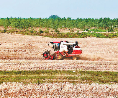 图为蔡华驾驶农机收割小麦。 廖楚雄摄(东说念主民视觉)
